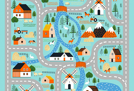 —Детский коврик Принт "НЕВА ТАФТ" ДЕРЕВЕНЬКА 15/13 1*1,5 (1,5 м2)